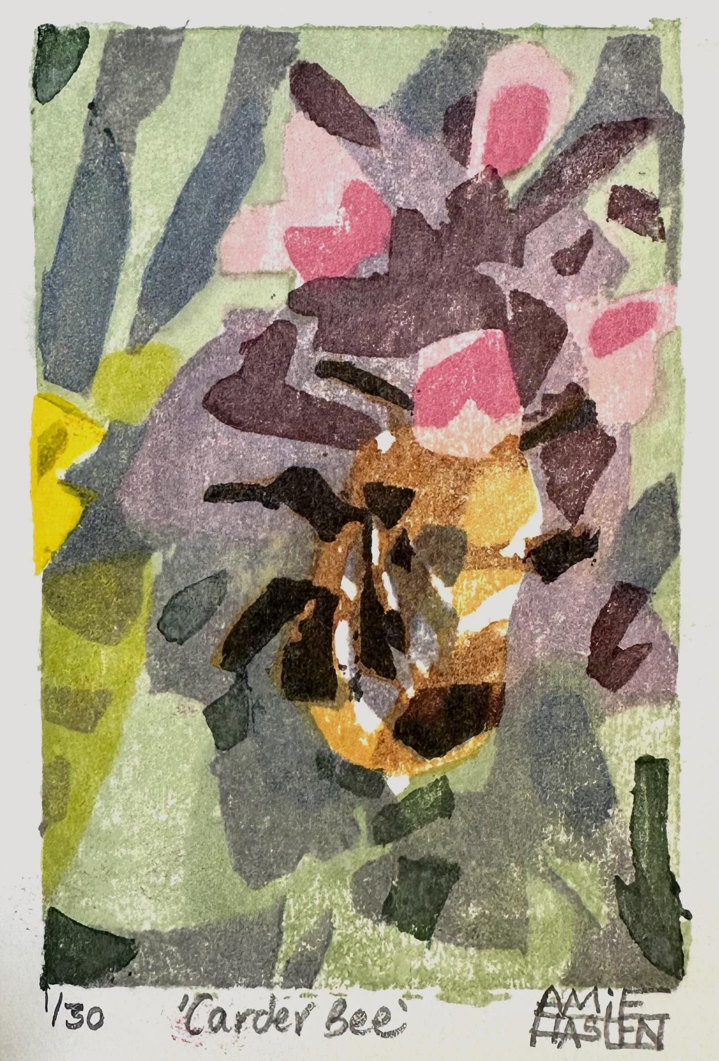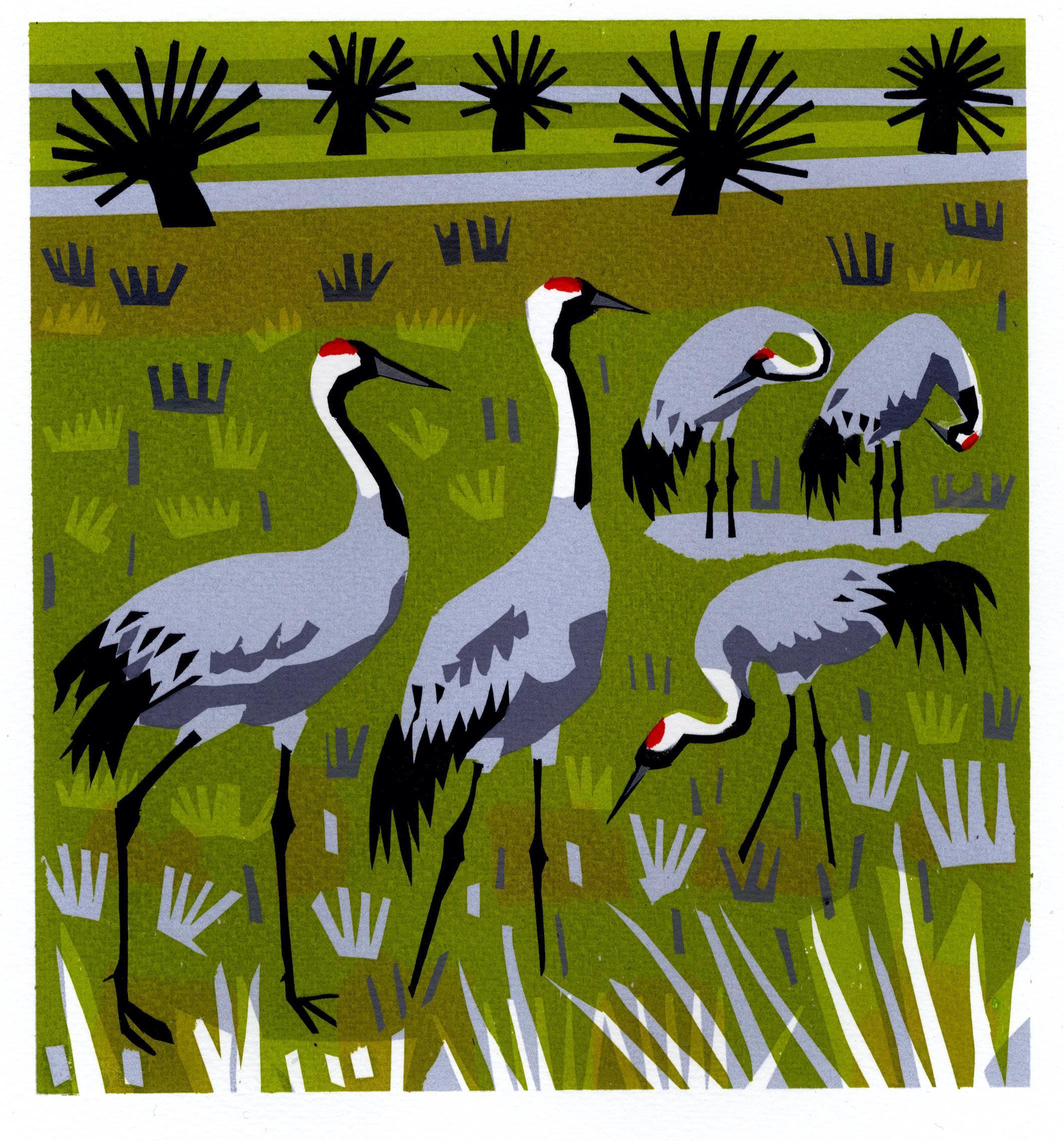 Based in rural Northamptonshire, Carry creates landscapes across the UK that often include birds she observes in the wild. Working primarily in serigraphy, she builds images through layered stencils, focusing on colour, shape, and composition to convey the character of each place.