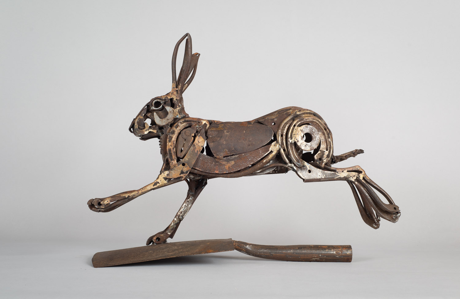 Harriet Mead, influenced from an early age by her father, ornithologist Chris Mead, creates sculptures that capture the presence and character of animals. Working in welded steel and found objects, she transforms discarded materials into expressive, life-like forms.