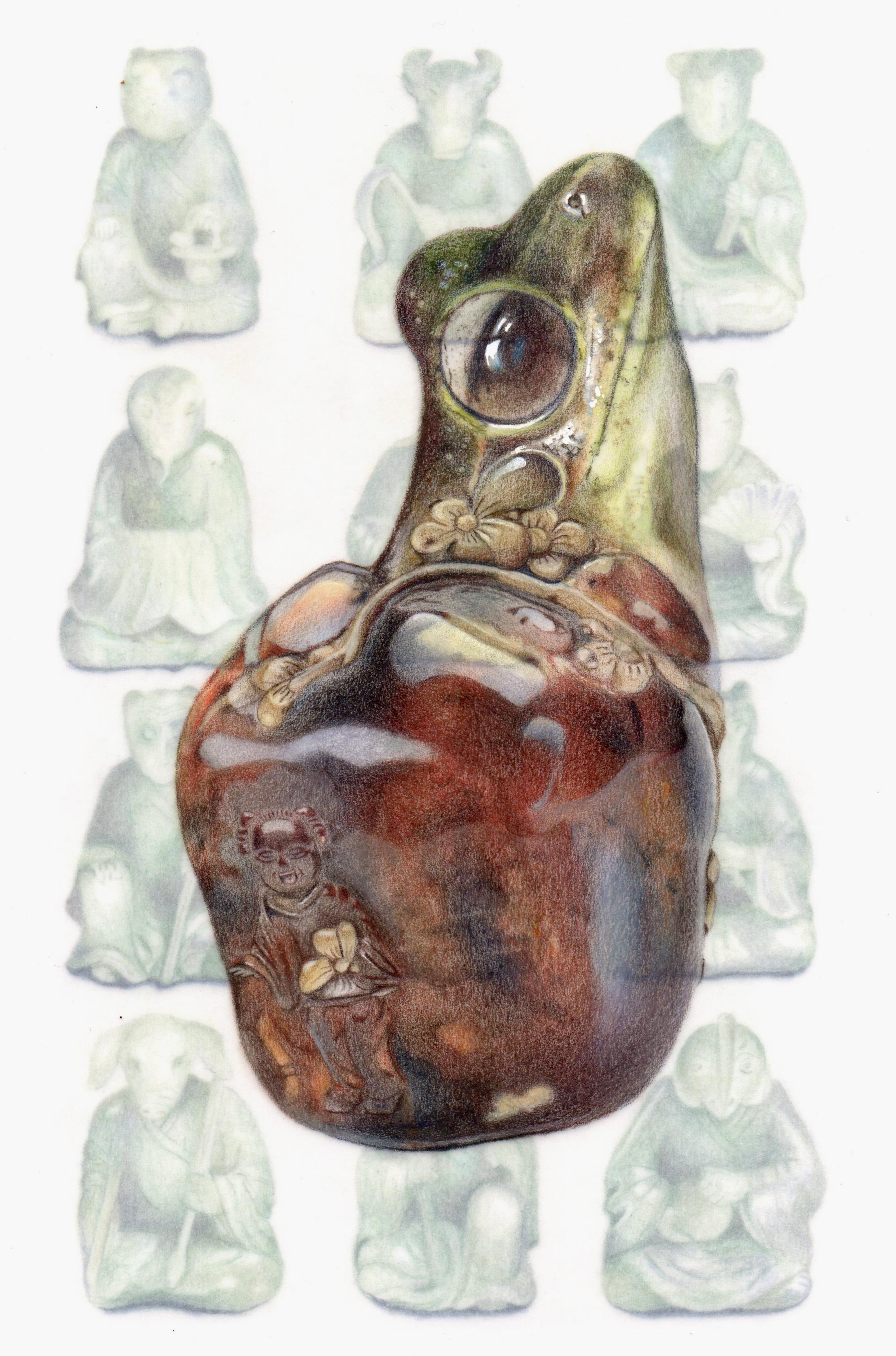Jerry Yi Chang’s work is closely linked to music and place. Midnight Pretenders 2 was inspired by a song he listened to while in Kyoto, where he imagined the drawing in bold blues and reds. The two works exhibited this year were made using the same medium, but in very different settings, one in a traditional artist’s studio in Kyoto and the other in a basement garage in London.